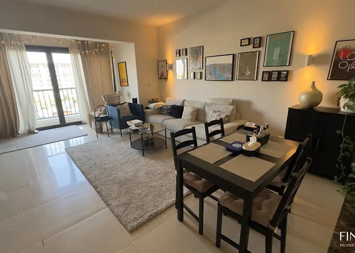 Situated approximately a 10-minute drive from Zezenia Mall, the spacious 145 m² Happy Vacation Duplex, New Cairo Apartment also boasts easy access to El Giza train station which is 42 km away. The 3-bedroom apartment comes with a swimming pool and a terrace overlooking the lake.